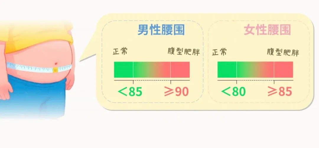 腰围是衡量内脏脂肪的重要指标。而内脏脂肪过量,与胰岛素抵抗、高血压、脂肪肝等密切相关。